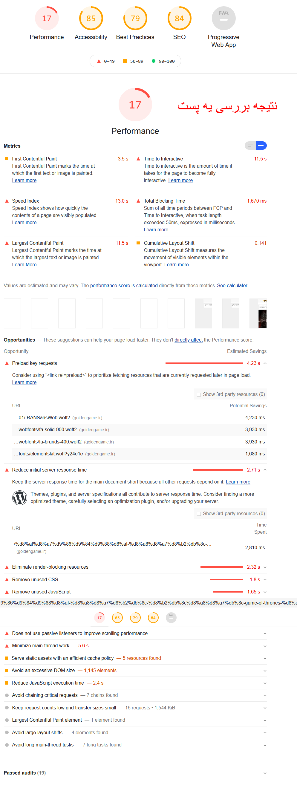 تصویر نتایج lighthouse و .. پیوست شد این هم نتیجه جی تی متریکس https://gtmetrix.com/reports/goldengame.ir/2qBB8gaD/