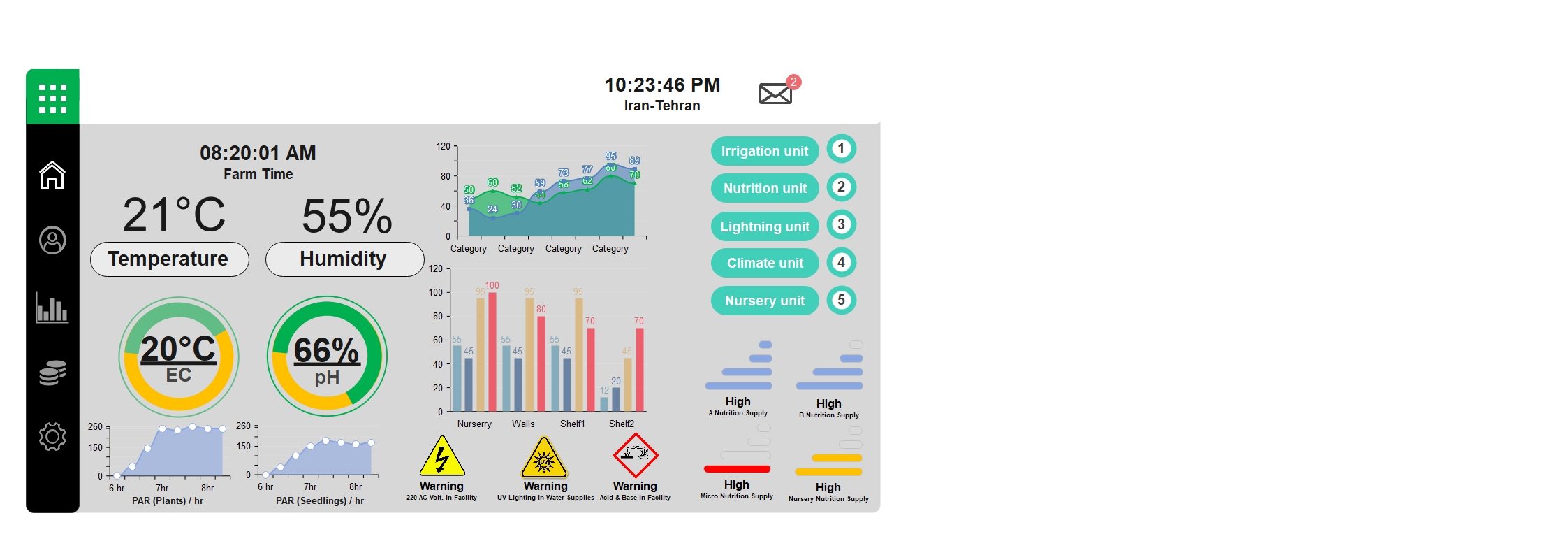 بعد از ورد به سیستم یک داشبورد داریم که اطلاعات مختلف از سنسور های خوانده شده توسط توسط یک میکرو کنترلر به برد توسعه ای رزبری پای ارسال میگردد تا داده ها دریافتی در داشبوورد نمایش داده شود