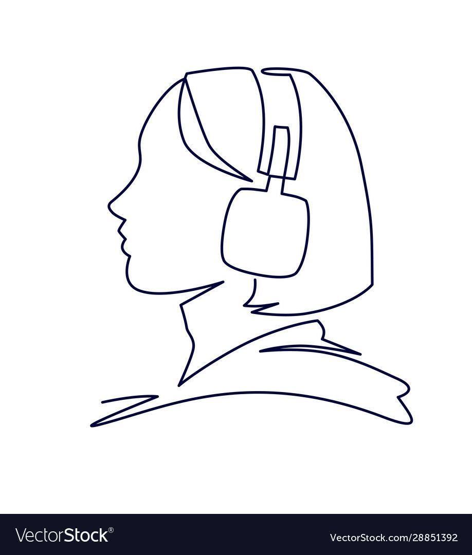 یا به طور کلی یک وکتور با طراحی خطی که شامل نیمرخ یک دختر با موهای فر عینک و هدفون روی سرش میباشد که در نهایت رنگ شود