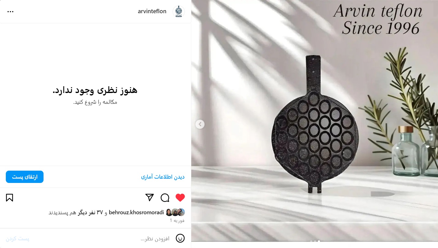 ما یک کارخانه بازسازی ظروف تفلون به نام آروین تفلون داریم و قصد داریم فعالیتهای حرفهای خود را در شبکههای مجازی، مخصوصاً اینستاگرام، گسترش دهیم. پیج اینستاگرام ما هماکنون ۱۱۰۰ فالوور دارد، اما فعالیتهای ما تاکنون نامنظم بوده و استراتژی مدون نداشتهایم.