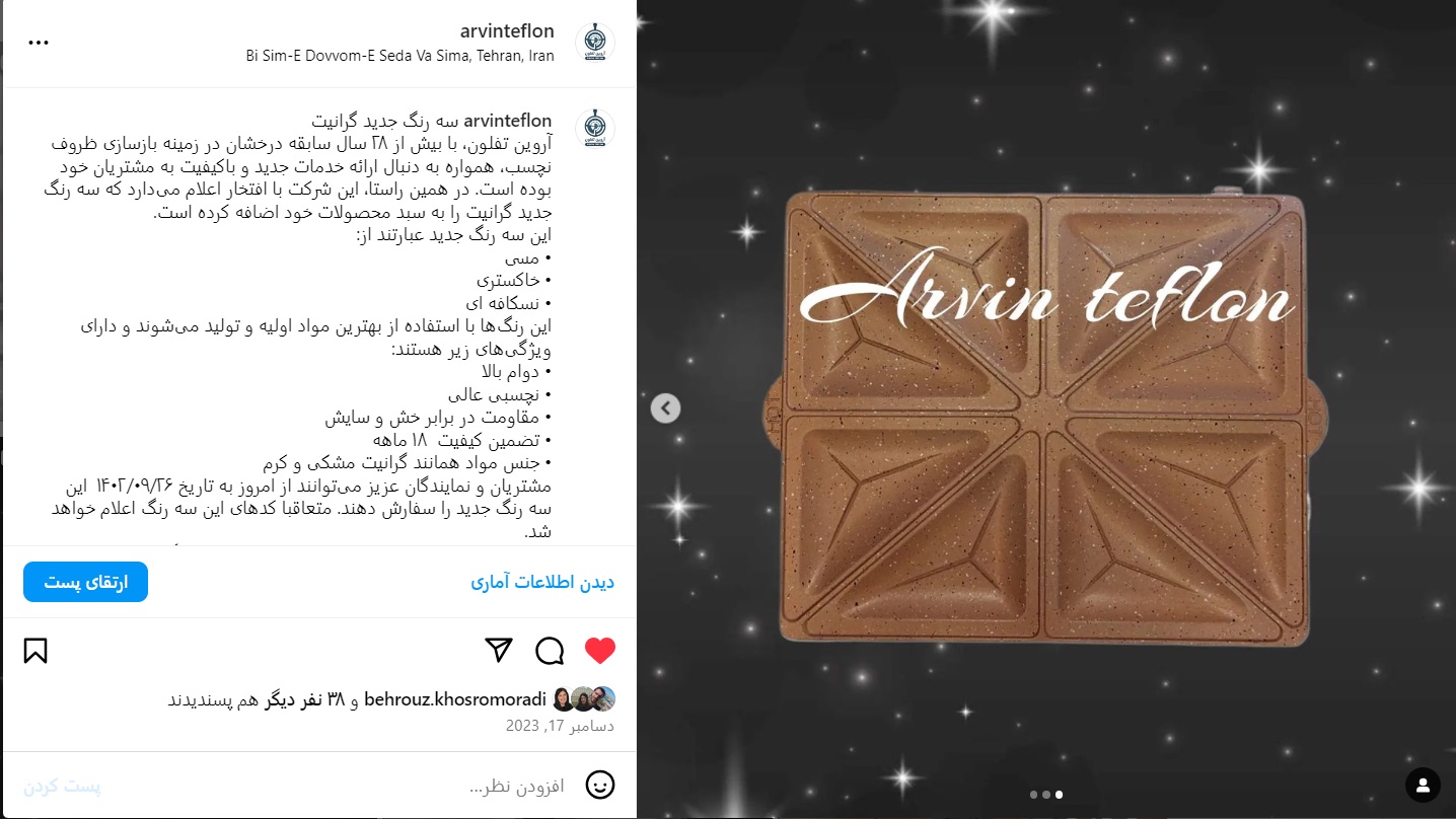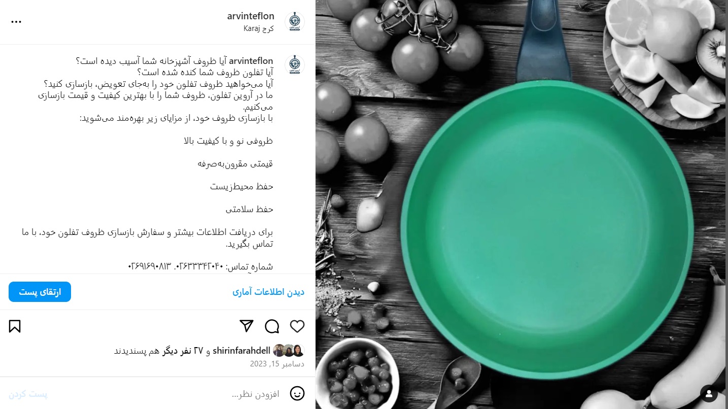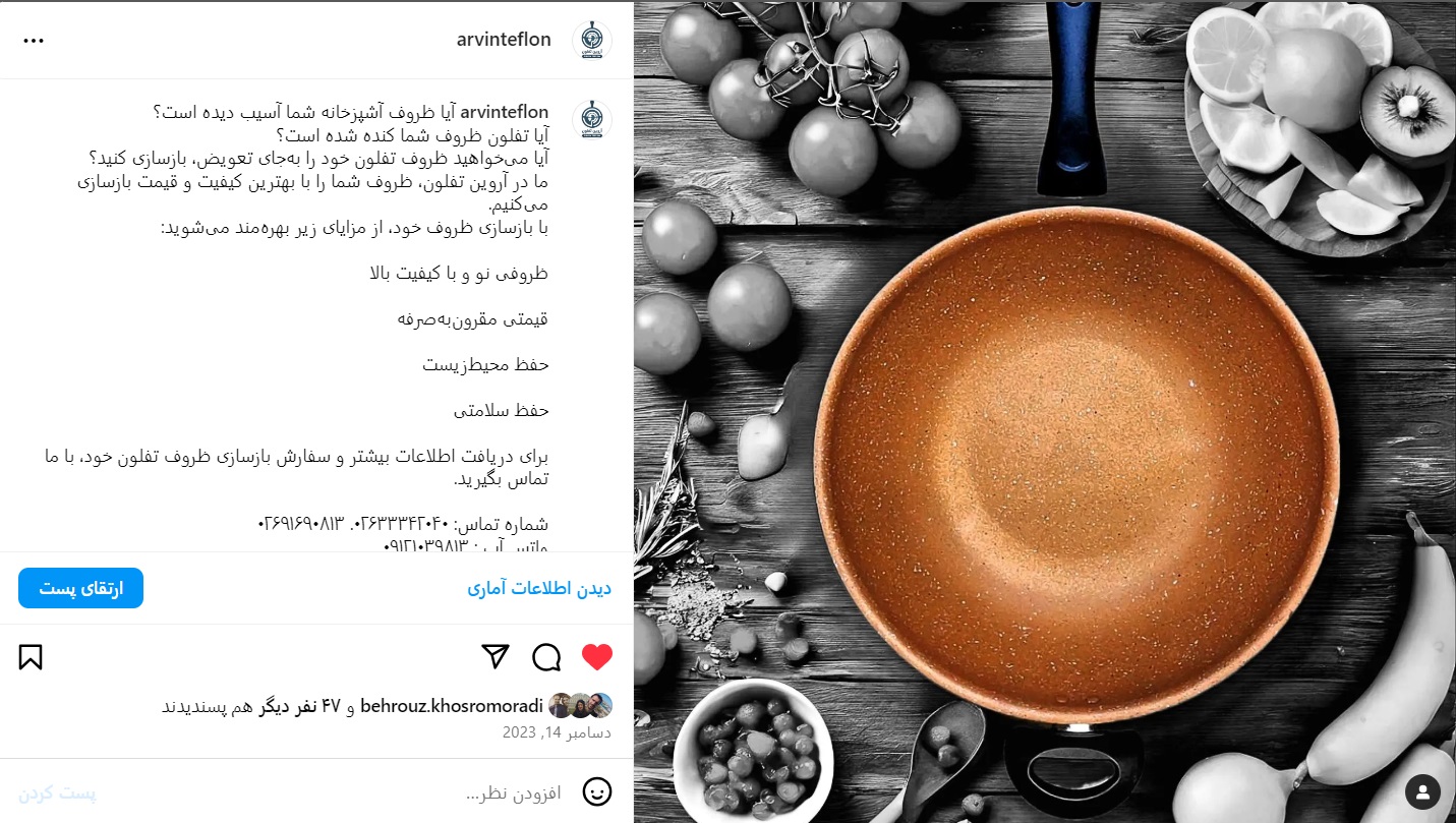 - ارائه محتوای مرتبط با بازسازی ظروف تفلون (محتوای آموزشی، معرفی محصولات و خدمات، و پشت صحنه کارگاه).