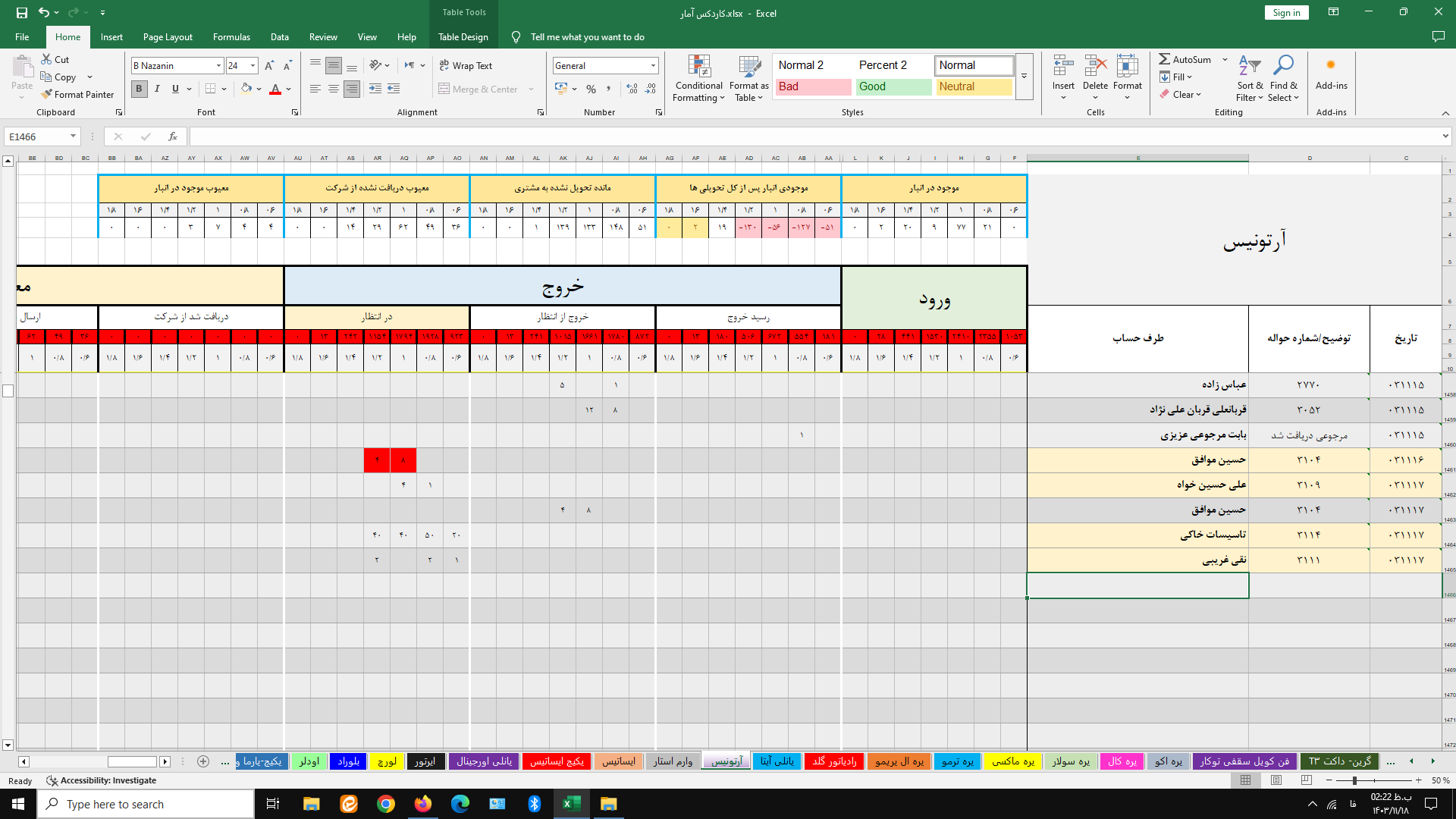 ۳. به ازای هر روز کاری یک شیت جداگانه برای ورود اطلاعات توسط منشی با نام روز (طبق تقویم شمسی)