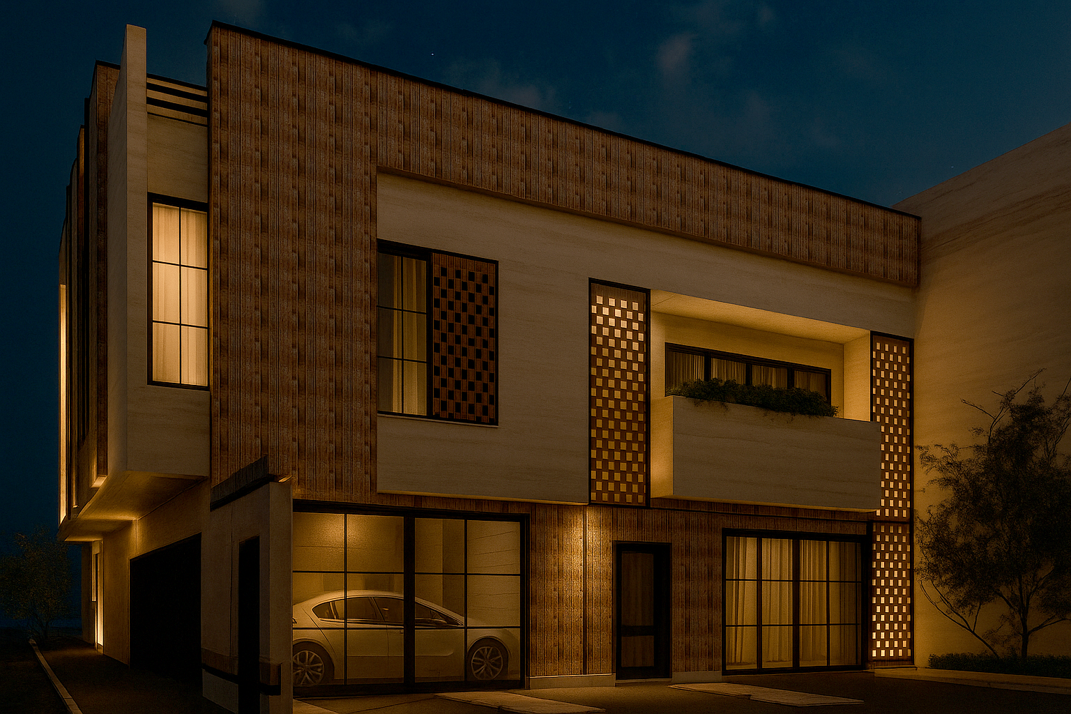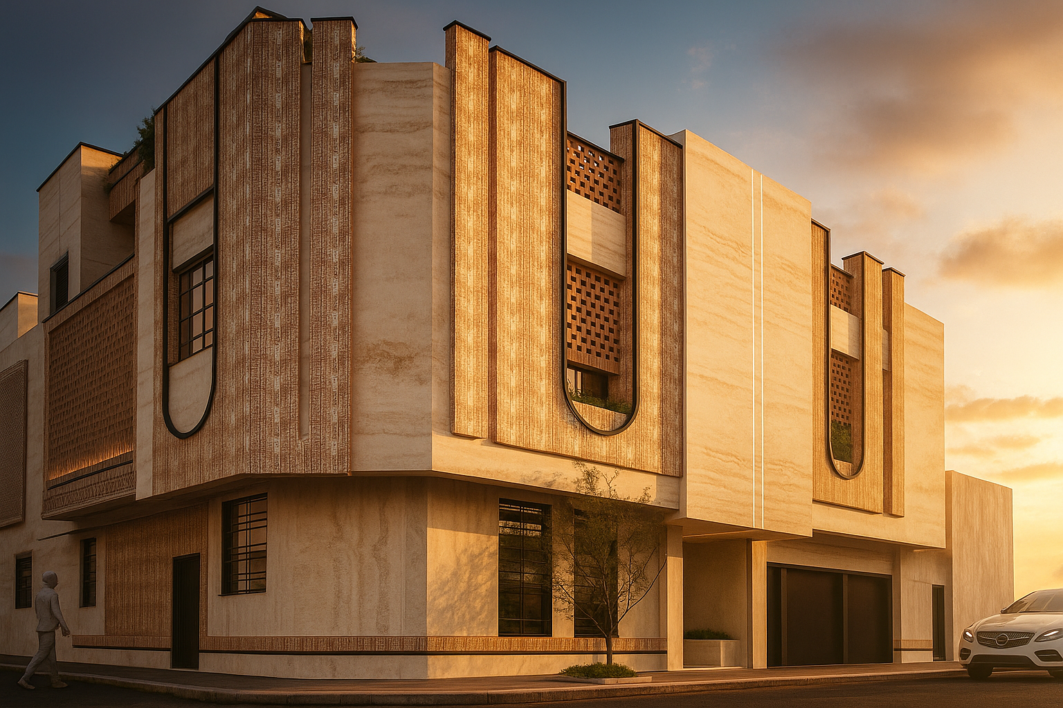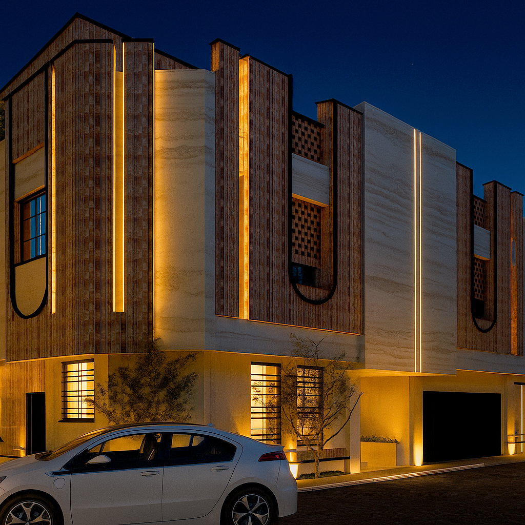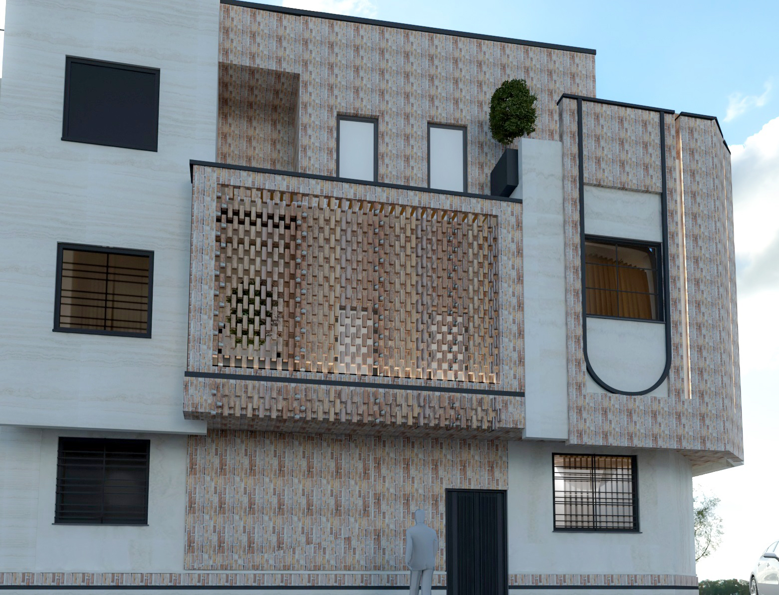 پروژه من طراحی نما یک واحد سه نبش بود که موقعیت نمای اصلی آن در جهت غرب و نور نامناسب برای اتاق ها قرار گرفته بود و با توجه به این که در یک شهر کویری وسنتی قرار دارد مثل یزد استفاده از سایبان ها و مشبک لازمه طراحی بود ولی به شکلی مدرن و امروزیمهارتهای مورد نیاز فایل ها