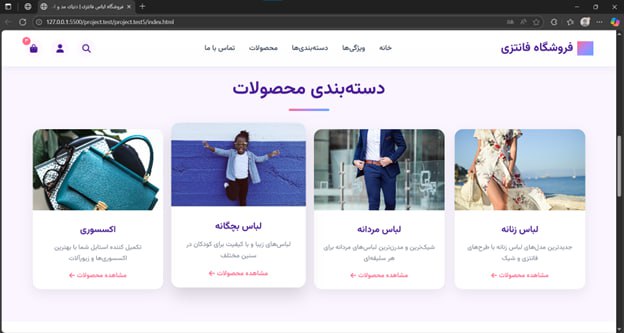 •    صفحه اصلی جذاب و زنانه با رنگ‌بندی متناسب با برند