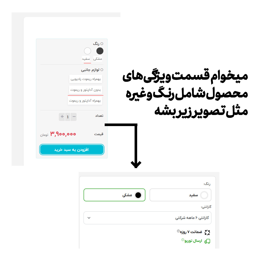 تغییر ظاهر نمایش ویژگی محصولبا سلام میخوام تغییراتی در ظاهر وبسایت طبق تصویر انجام بشه قسمت ویژگی های وبسایتم مثل تصویری که گذاشتم نشون بده ممنون