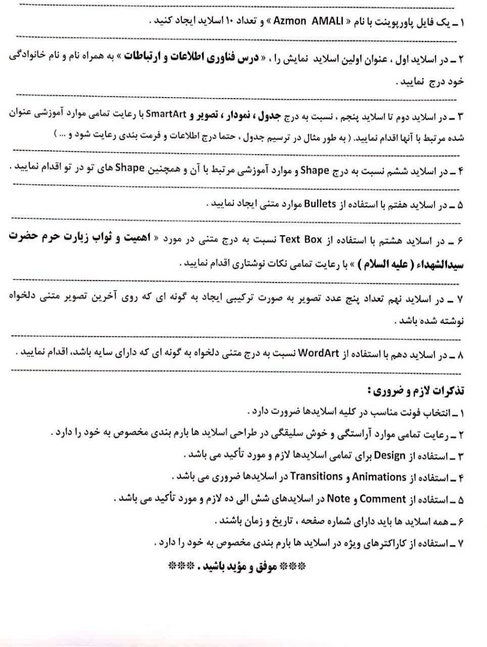 - تهیه فایل powerpoint با توجه به محتویات فایلهای پیوست
