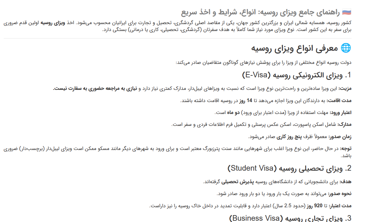 عنوان پروژه: تولید محتوا برای سایت گردشگری و ویزا