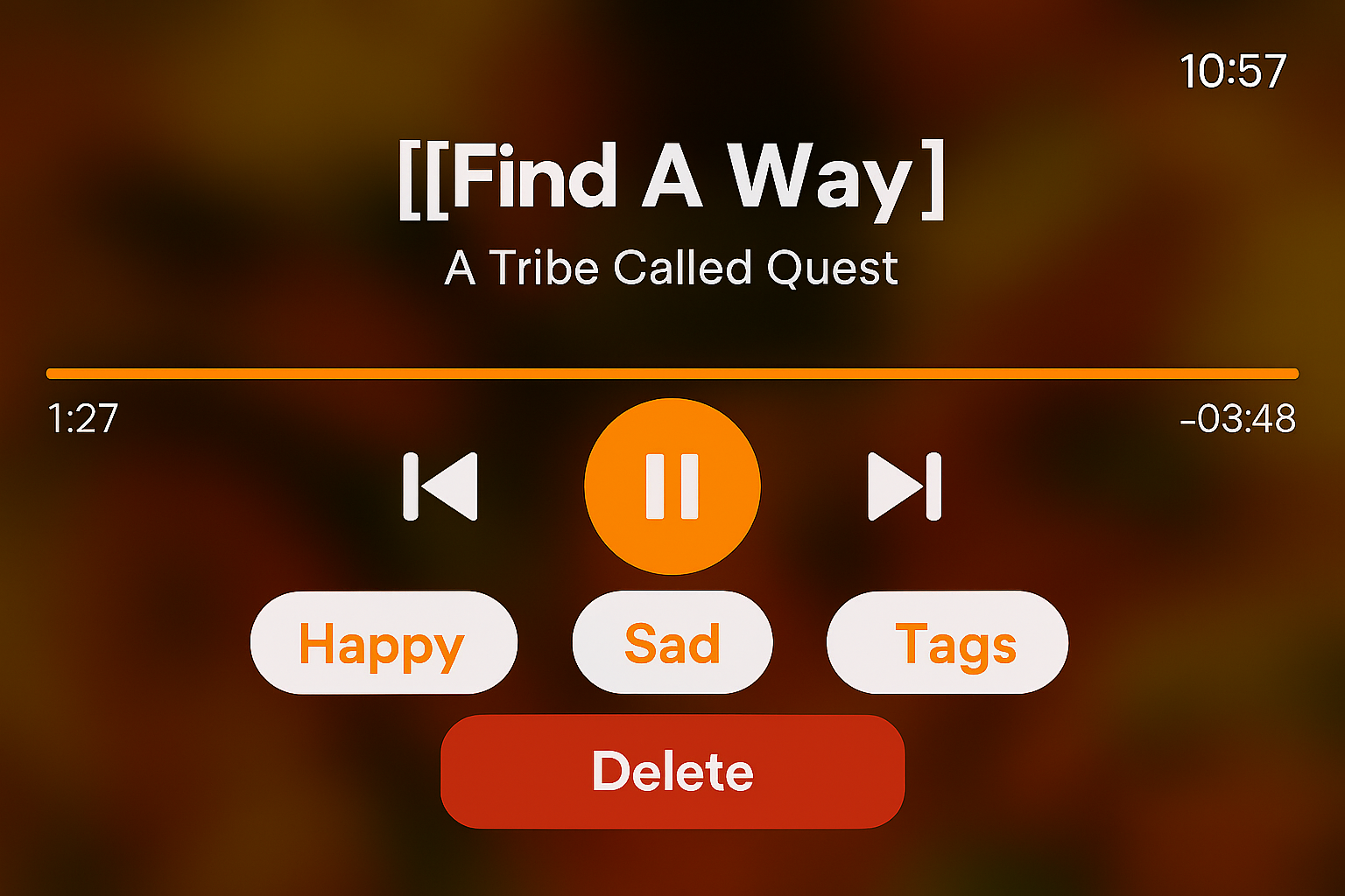 کلا هدف از طراحی این اپ اینه که چون من موزیک های زیادی دارم و وقت ندارم مرتبشون کنم،هنگام رانندگی وقت آزاد دارم پس موزیک پلیری که تو خودرو ازش استفاده میکنم باید جوری باشه که خیلی راحت بتونم موزیک ها رو دسته بندی و یا حذف کنم پس به کلید های بزرگ - تگ گذاری در سریع ترین زمان با یک کلیک - سوایپ کردن برای تعویض آهنگ ها و... نیاز دارم