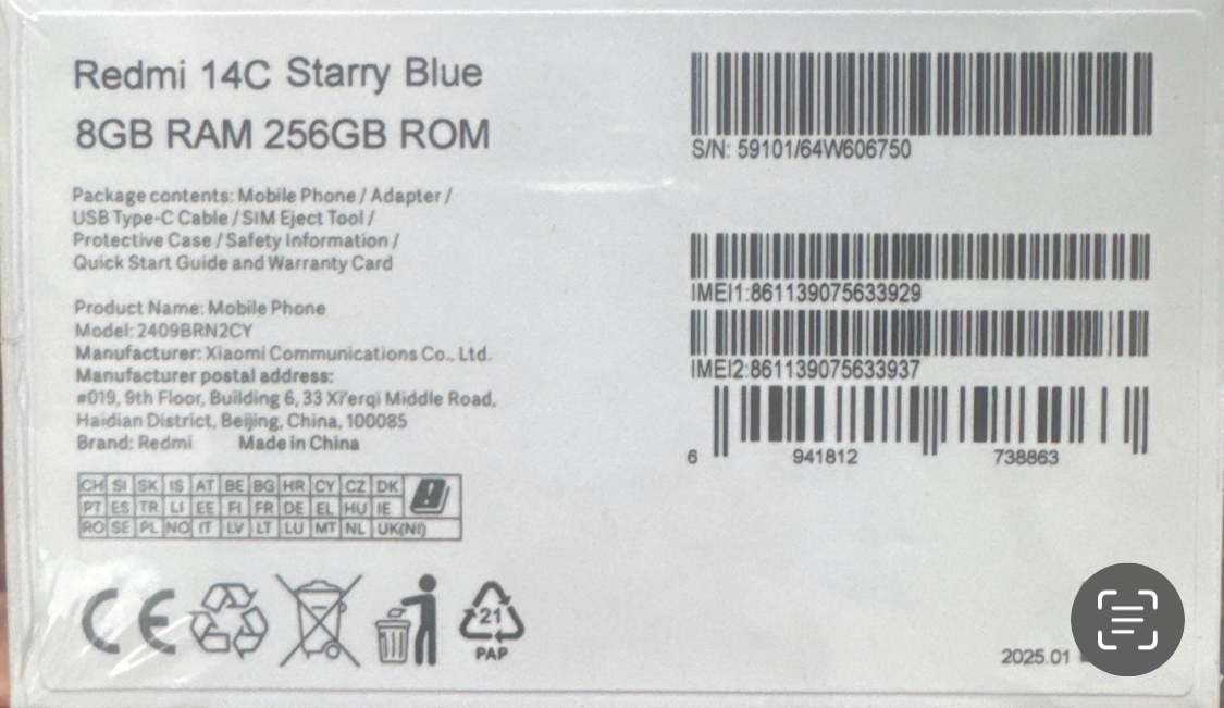 • ساختار کلی شامل:1️⃣ بخش مشخصات فنی و اطلاعات تولیدکننده 2️⃣ سه بارکد نوع Code 128 برای شناسهها (Serial / ID1 / ID2) 3️⃣ یک بارکد EAN-13 پایینتر از آنها 4️⃣ جدول کدهای کشور (با خطکشی داخلی) 5️⃣ آیکونهای استاندارد (CE، Recycle، Trash، PAP21 و Book icon) 6️⃣ QR code و عدد تاریخ تولید در پایین سمت راست