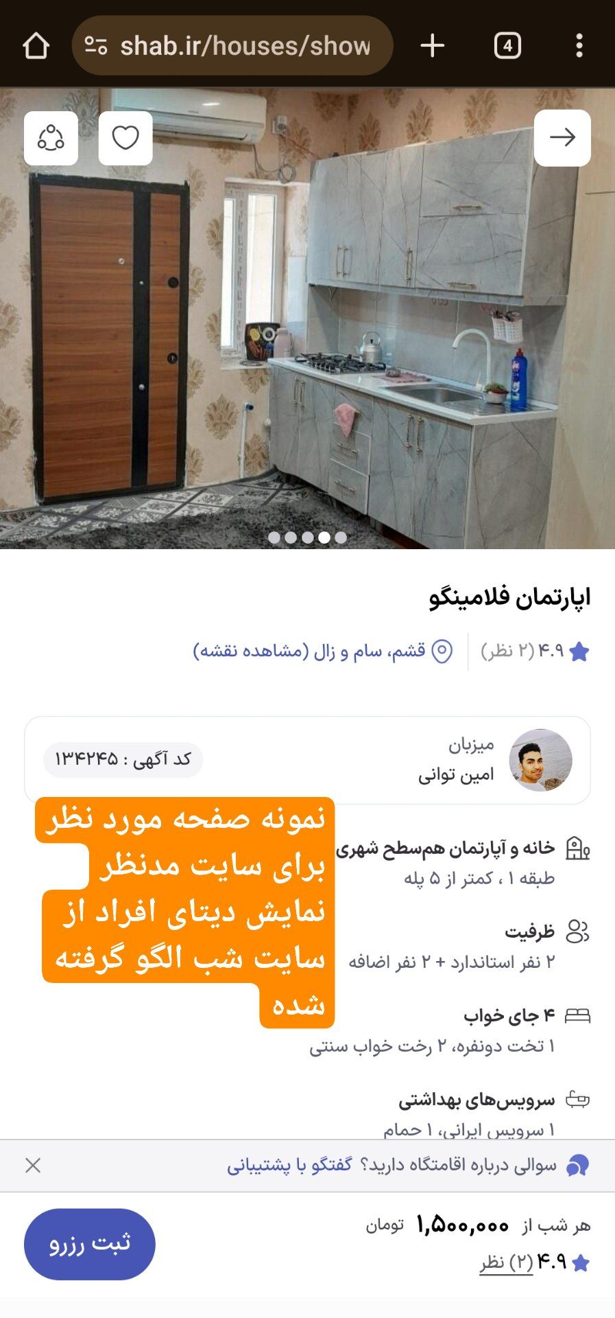 • دکمه ۱: نمایش شماره تماس (شماره مخفی تا زمان کلیک)