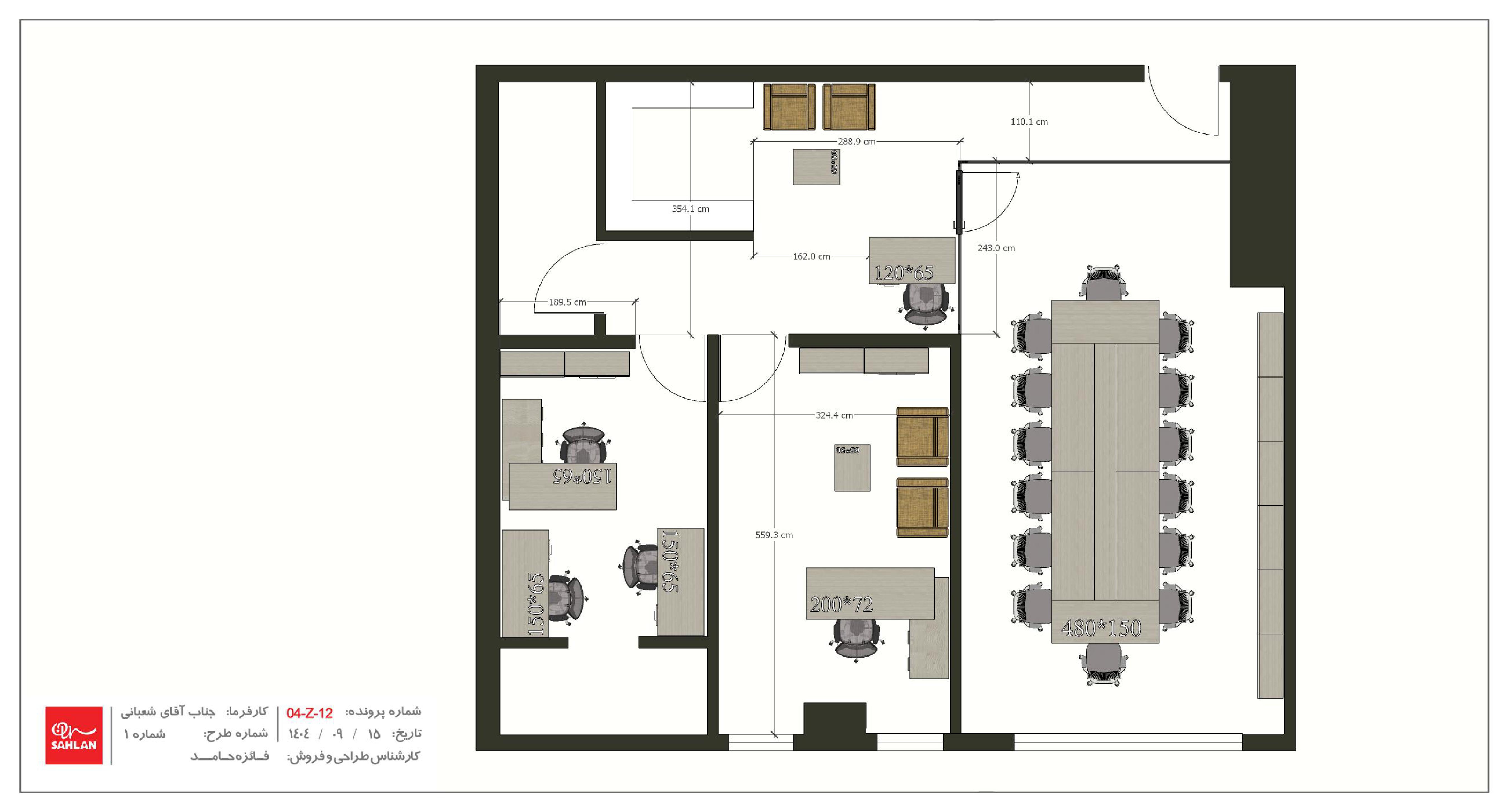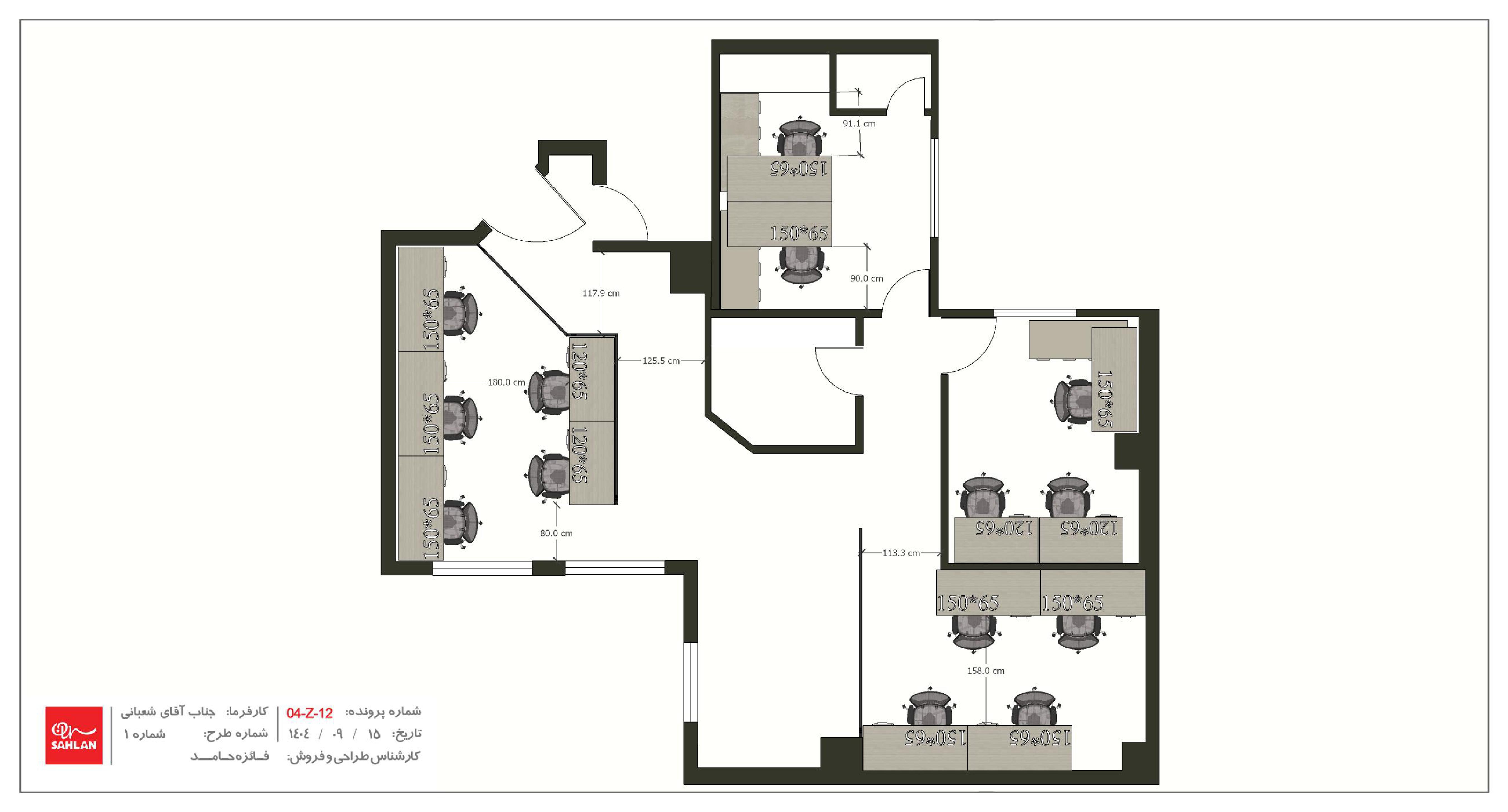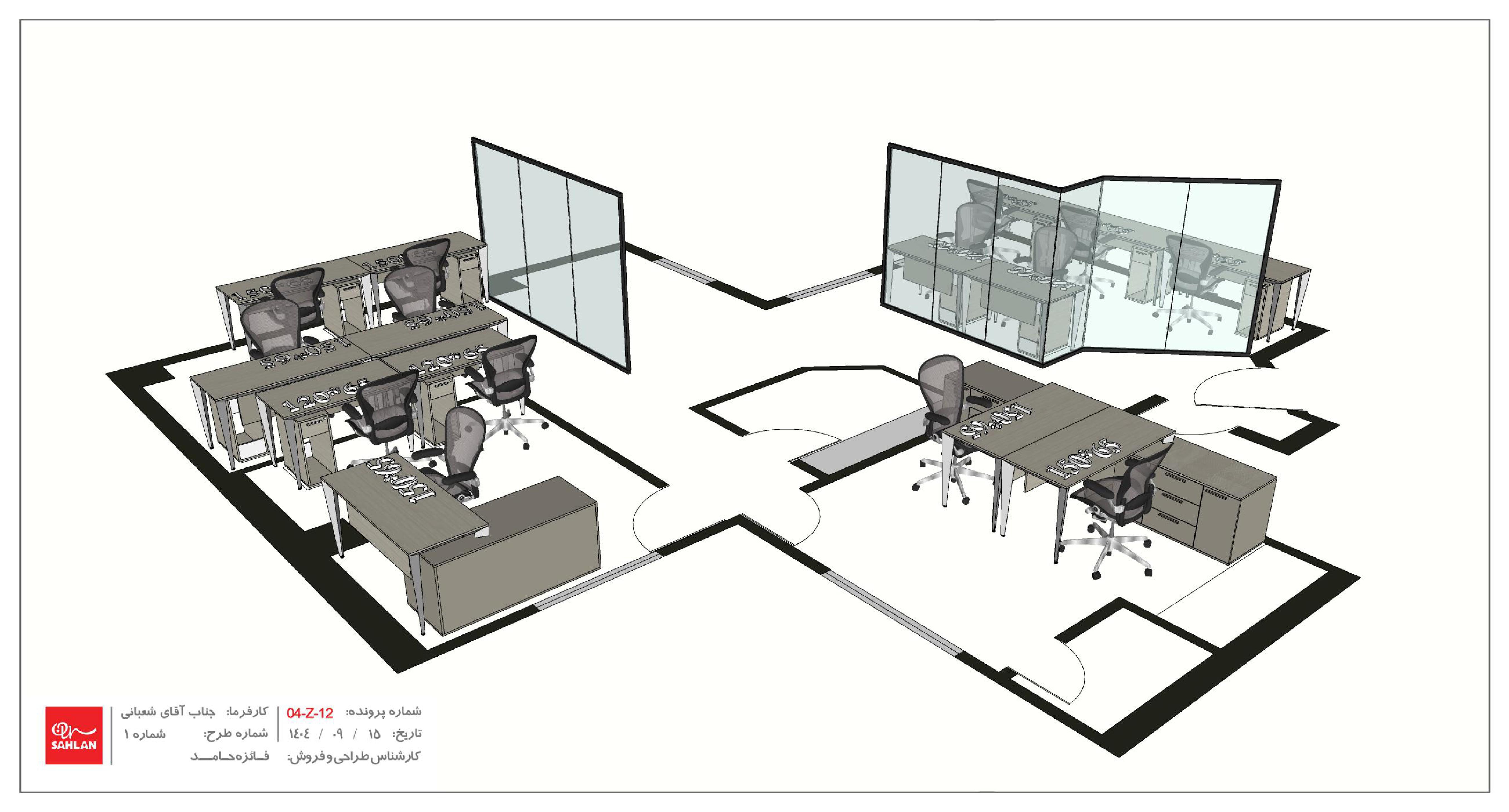 بر اساس فایل جانمایی انجام شده انتظار داریم با مشخصات دادهشده و بر اساس نمونهمیز های پیشنهادی یک طرح سه بعدی از فضای شرکت تهیه گردد، انتظار داریم طراحی دیوارها و همچنین نورپرداز ی از سوی طراح پیشنهاد گردد. در واحد شمالی (واحد کارشناسی) مجموعهای از میز ها خاص کارشناسی شرکت با ترکیب رنگ پیشنهادی بایستی طراحی و اجرا گردد. در واحد جنوبی (واحد مدیریتی) یک سال کنفرانس داریم در سمت چپ یک دکور پشنهادی می خواهیم داشته باشیم از سوی طراح در دیوار سمت راست اتاق کنفرانس یک طرح لوگوی سه بعدی خواهیم داشت در قسمت شمالی اتاق کنفرانس یک پارتیشن تک جداره فرم لس که روی آن یک تلویزیون ۱۰۰ اینچ در وسط و دیوارههای طرفین وایت برد خواهد بود در داخل سالن یک میز ریسپشن (پذیرش) خواهیم داشت اتاق مدیریت + به همراه طراحی کمد دیواری مطابق شکل اتاق حسابداری + طراحی کمد دیواری مطابق شکل در واحد مدیریتی طراحی با حفظ آشپزخانه و یک بار هم با حذف آشپزخانه و تبدیل آن به یک لابی که یک ست مبل داخل آن باشد جهت پذیرایی از مهمانان هر نوع پشنهادی که از سوی طراح مطرح شود و مورد تایید ما قرار گیرد.