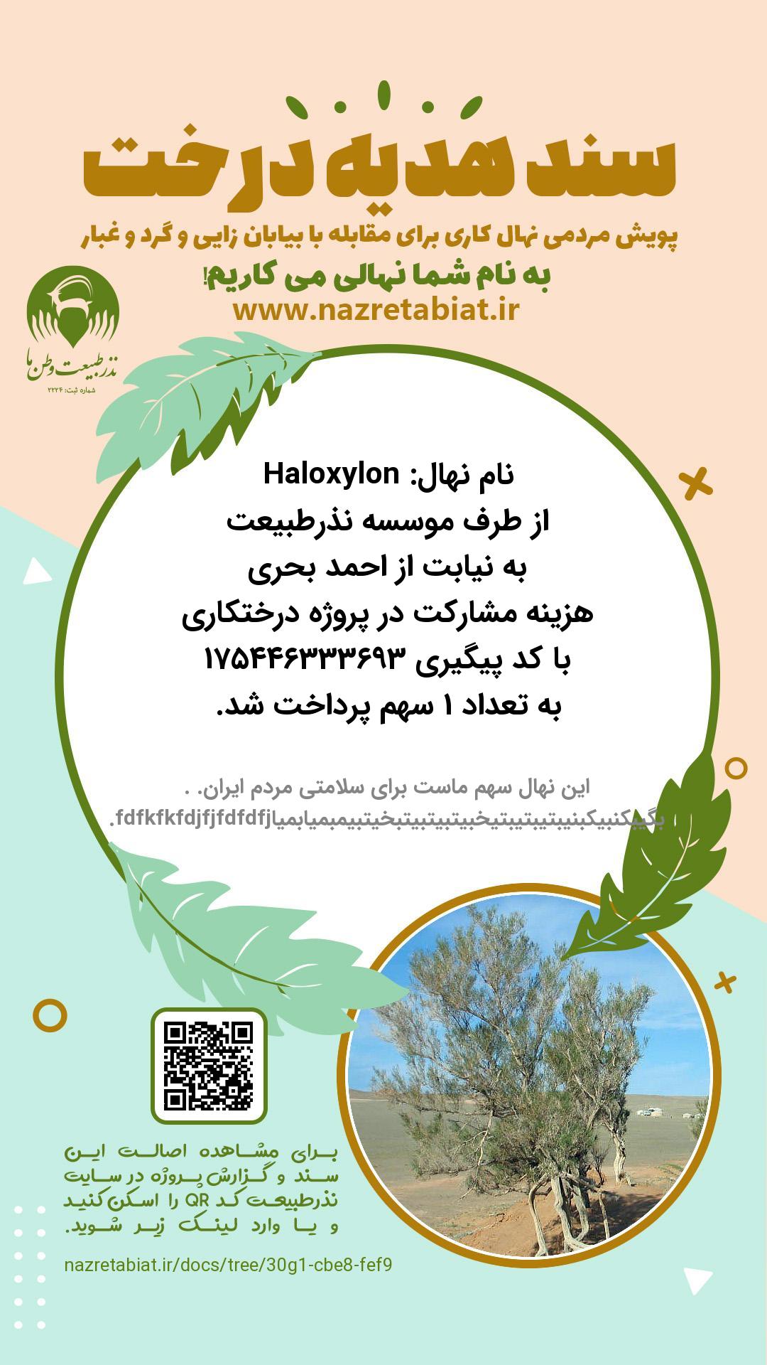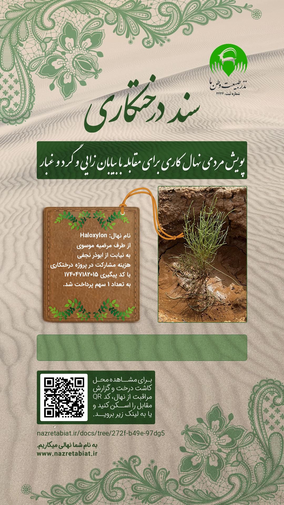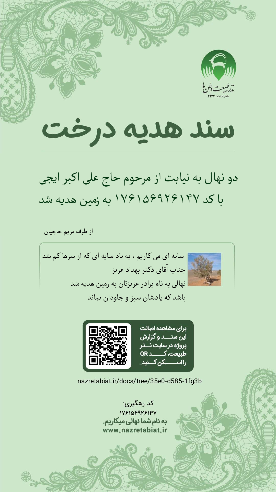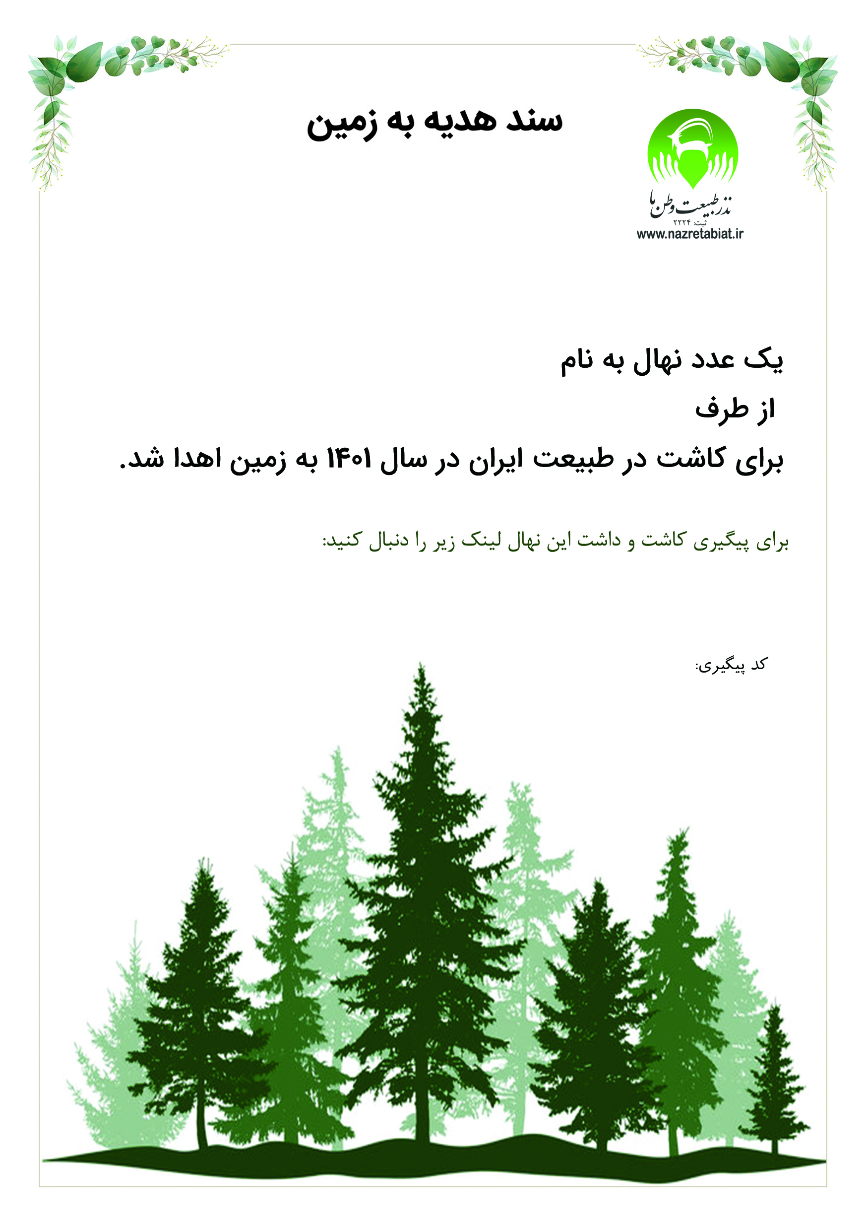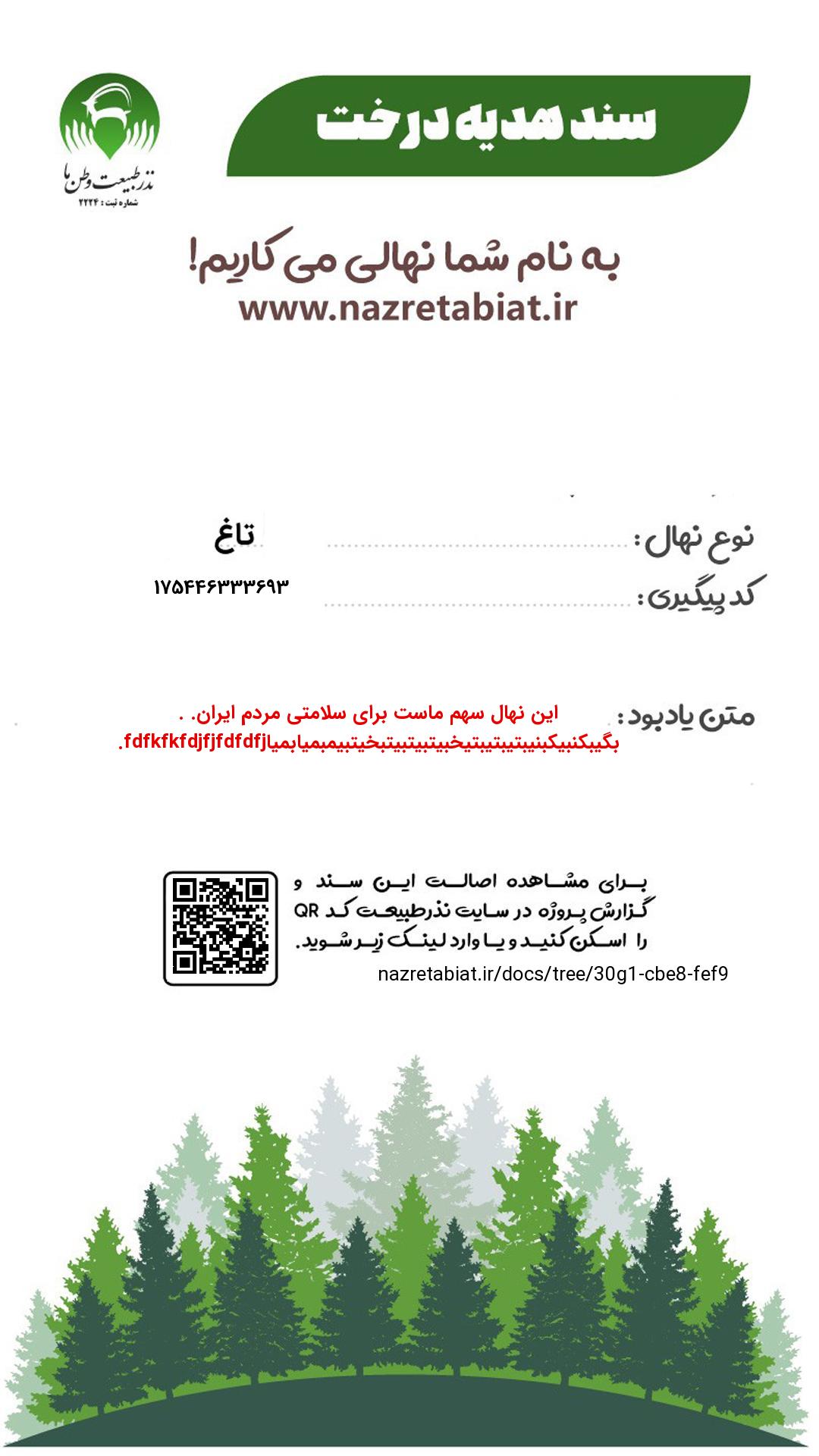 اطلاعات روی سند متغییر هست و برای هرفردی تغییر میکنه مثل نام درخت،نام هدیه دهنده،کد درخت،پیام و یک کادر برای کد کیوآر.