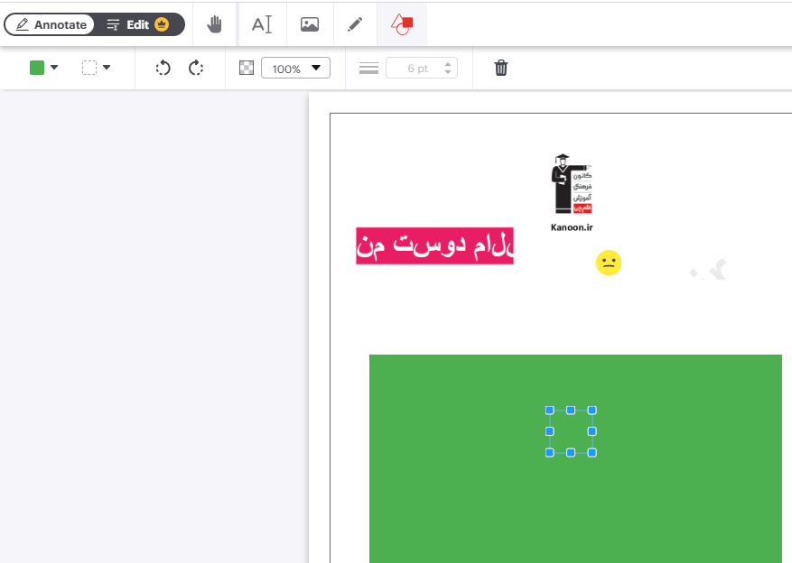 - امکان افزودن اشکال هندسی مربع،دایره با قابلیت تعیین رنگ به پی دی اف ( چیزی شبیه ابزار https://www.ilovepdf.com/edit-pdf )