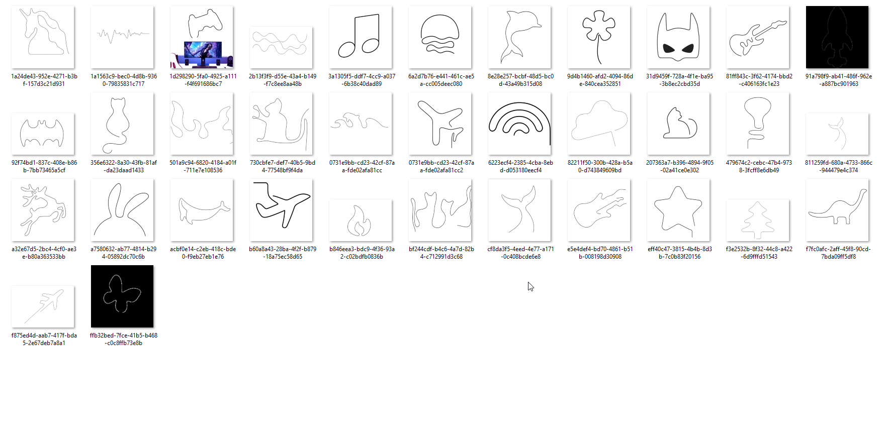من ۳۵ تصویر PNG شامل اشکال خطی ساده در اختیار دارم که هر کدام فقط از یک خط ممتد و پیوسته تشکیل شده‌اند. (مانند تصویر ضمیمه)
