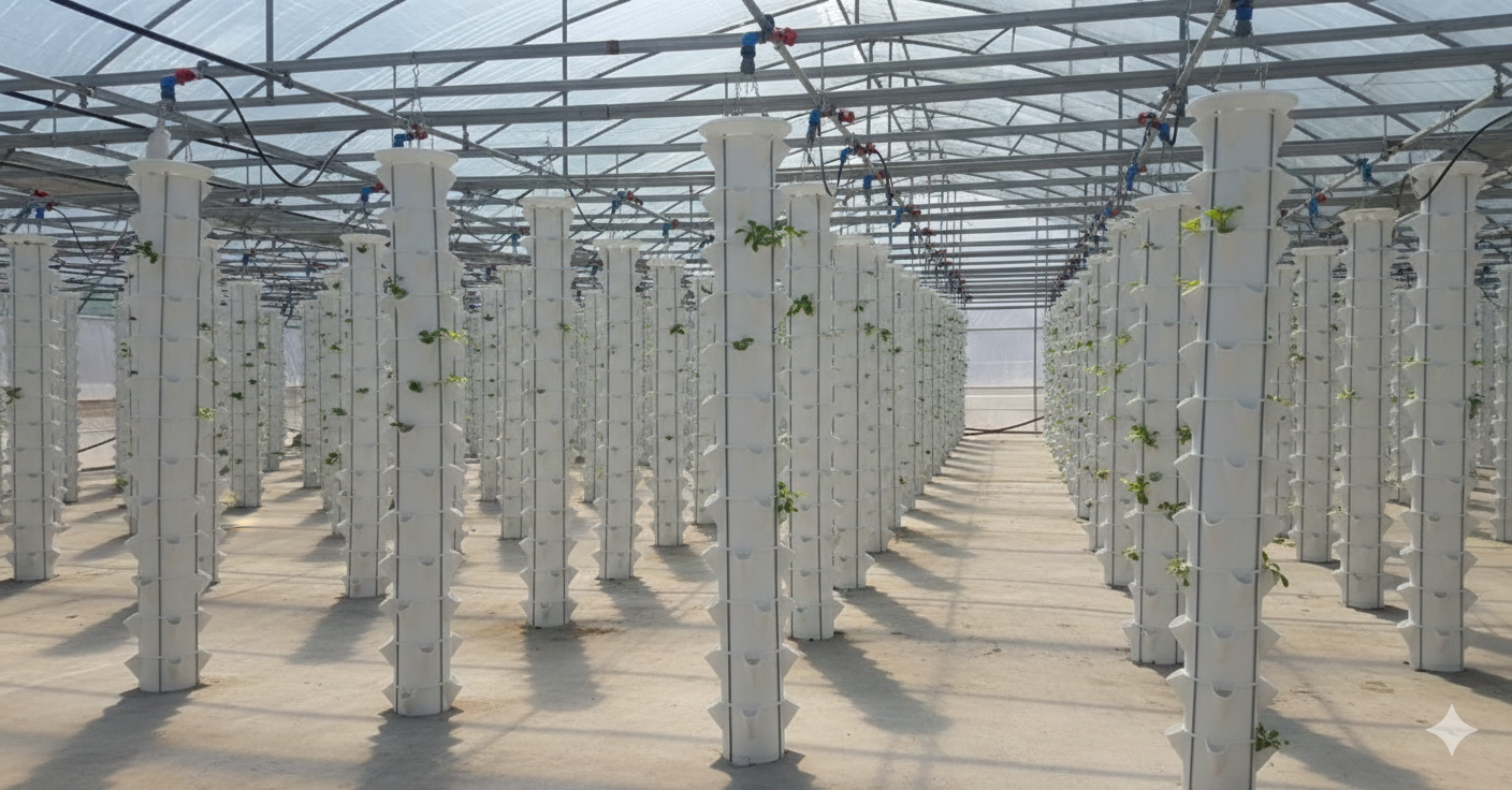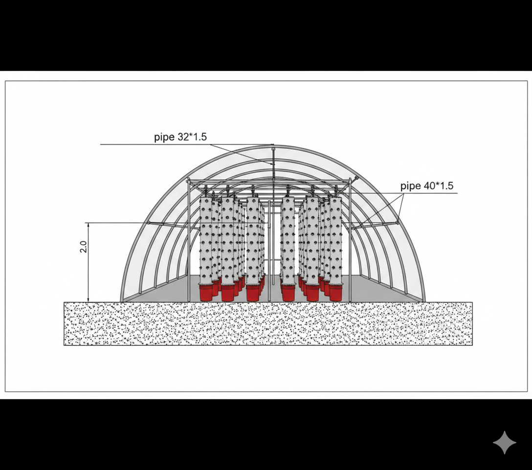 پس از طراحی سازه، باید سیستمهای کشت (برجهای کشت) داخل گلخانه طراحی و جانمایی شوند، با جزئیات زیر: