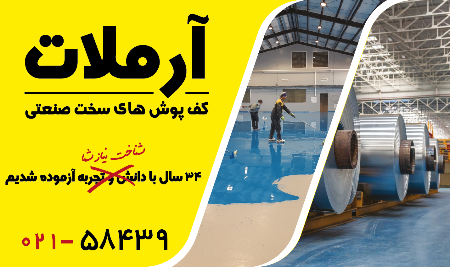هدفمون اینه اسم آرملات بزرگ باشه کف پوش های سخت صنعتی شماره تماس نمونه های شرکت های دیگه هم براتون میزارم یک بنر با ابعاد تابلو 720*1210 سانتی متر و با رزولیشن 30